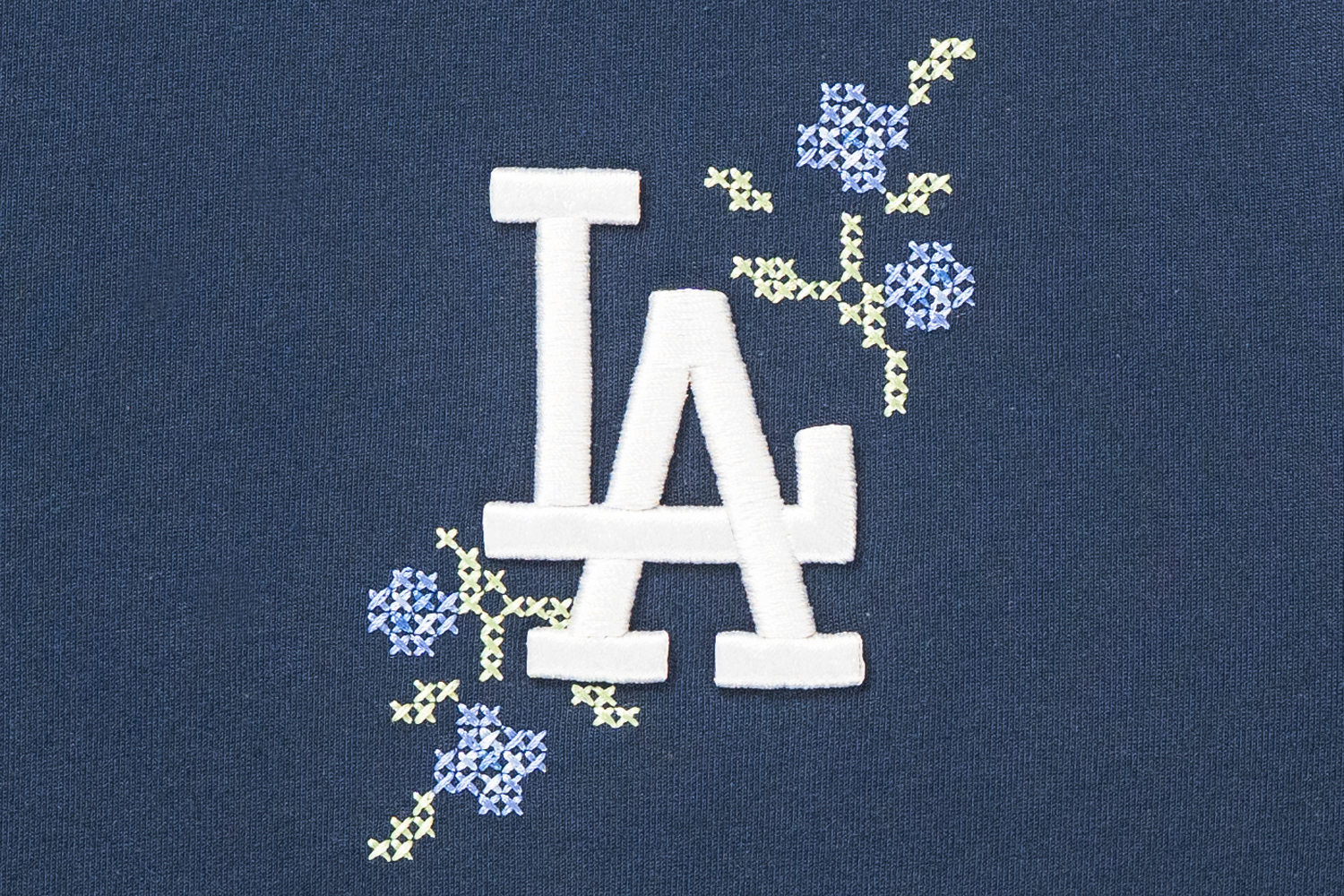 •  Raised embroidered team logo with cross-stitching flower placed on left chest