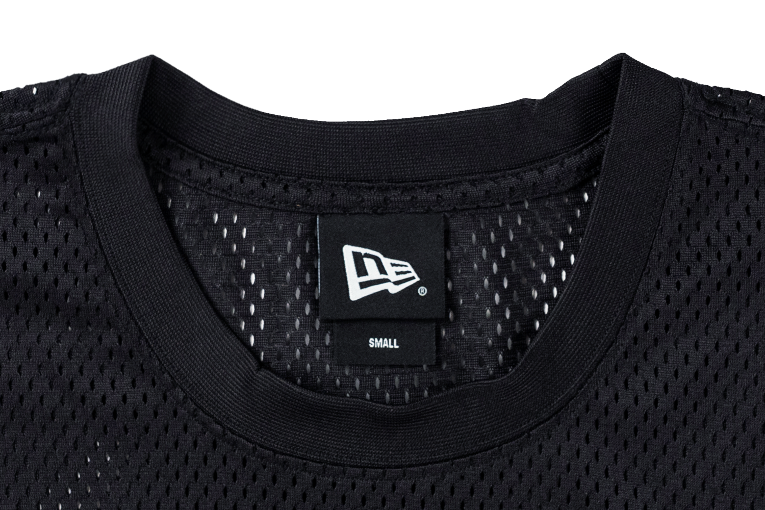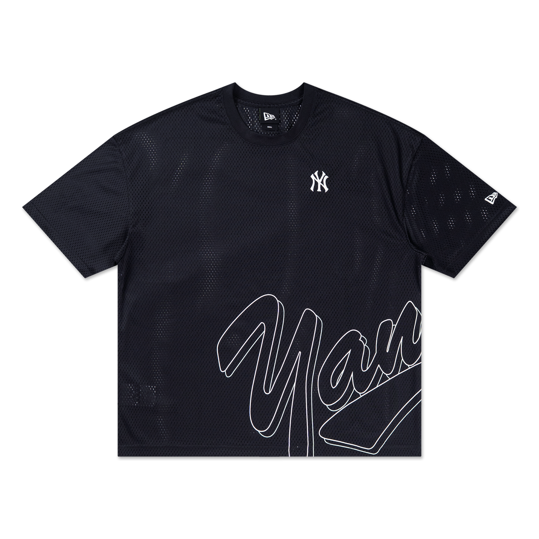 - The mesh tee features a branded/team wordmark printed across the front and rear bottom.